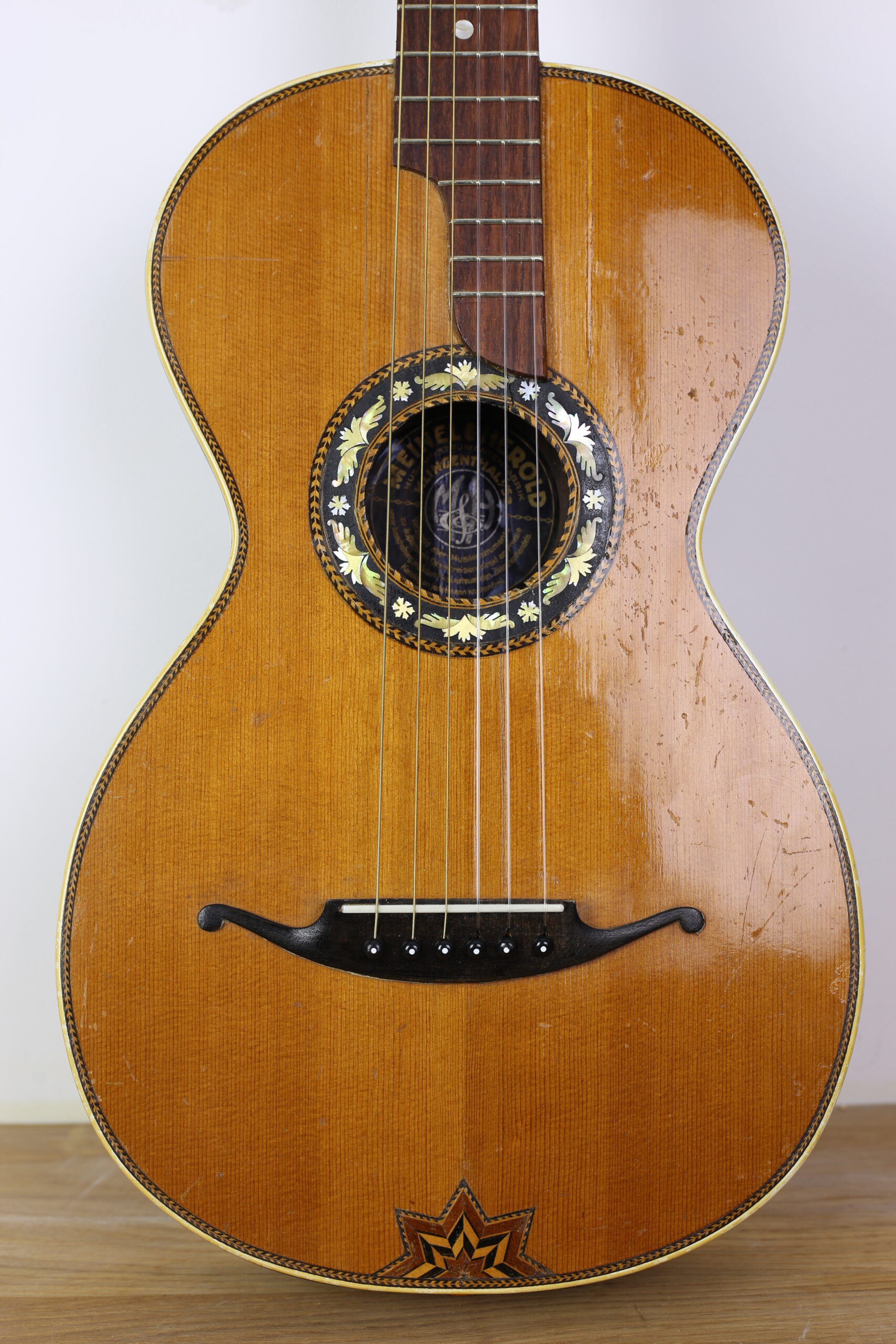 Meinel & Herold klassieke parlor-gitaar. Verleent zich erg goed voor barokmuziek. Netjes afgesteld.